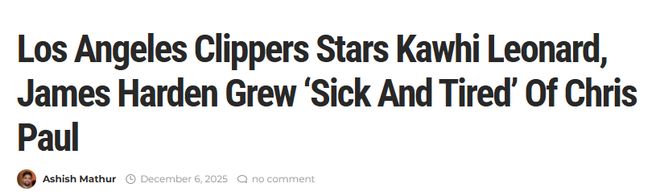 北京时间12月7日,据NBA记者Mathur报道,消息人士透露,快船队球星莱昂纳德和哈登早已对保罗“心生厌烦”